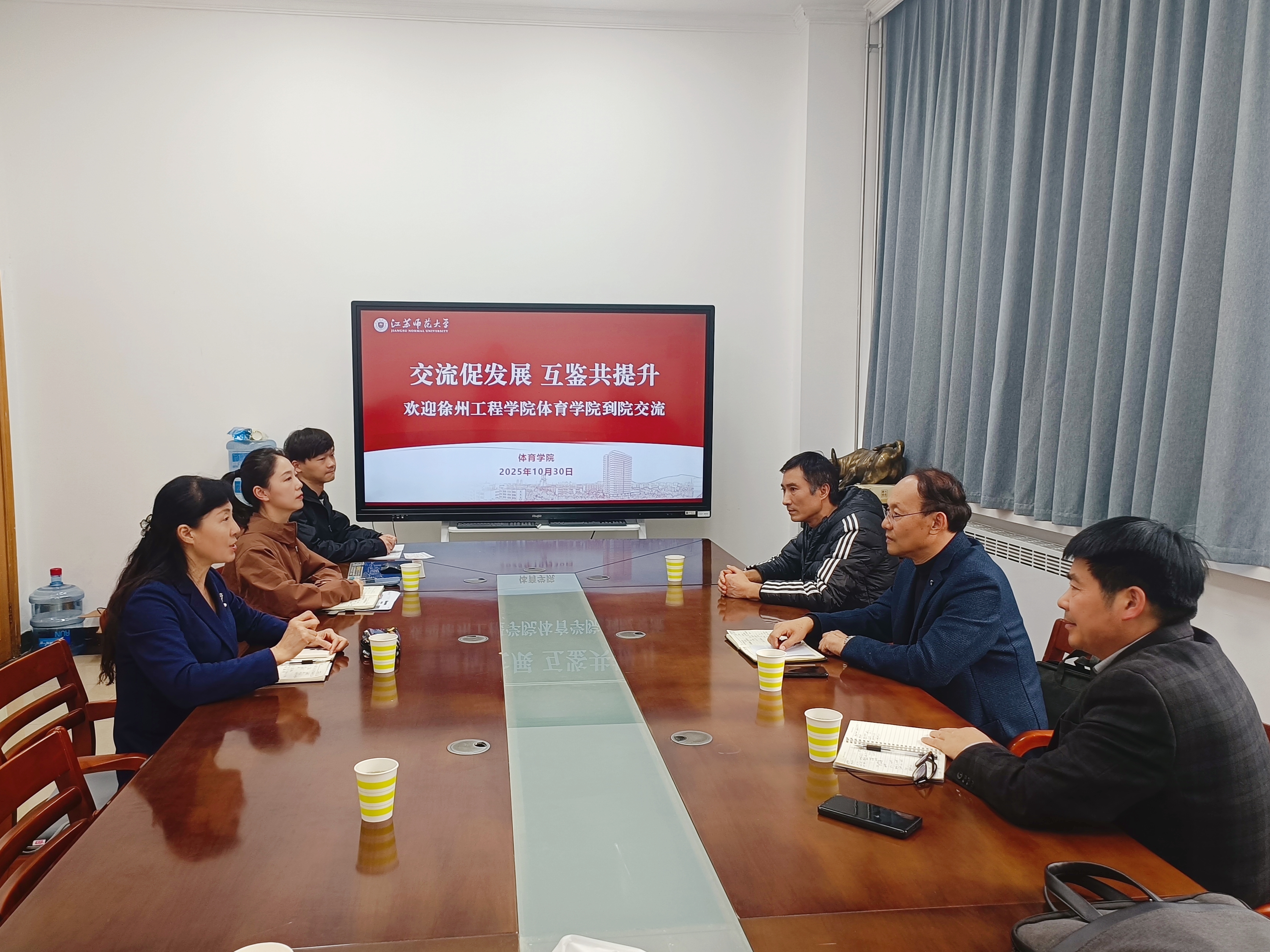 10月30日,徐州工程学院体育学院党委书记刘洪民一行到我院进行考察交流。学院党委书记房冬梅、副书记朱悦和就业辅导员参加此次活动。双方围绕学生培养、师资建设、就业工作等议题进行了深入探讨。