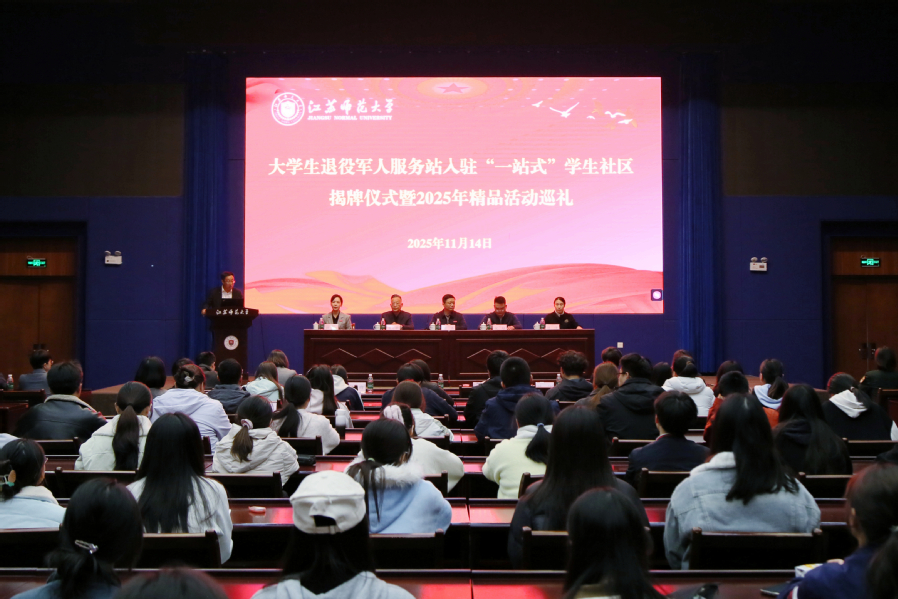 日前,我校举办大学生退役军人服务站入驻“一站式”学生社区揭牌仪式暨2025年精品活动巡礼。校党委常委、副校长商亮,校党委常委、宣传部部长孟召学、徐州市退役军人事务局副局长宋培、泉山区人民政府副区长陈倩等出席活动。各学院党委副书记、专职辅导员与180余名学生代表参加活动。