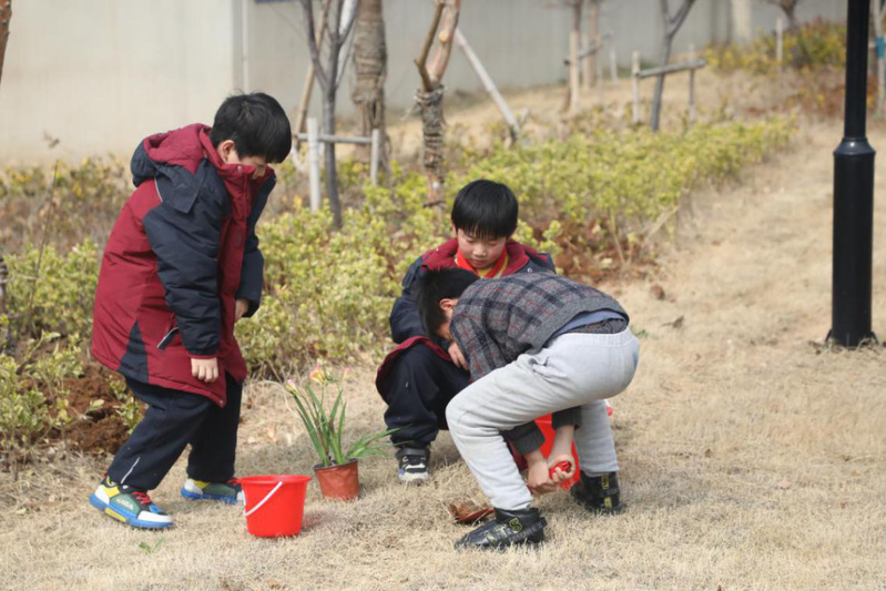 小小的种子孕育着生的希望。学校发放花种给播种的班级,各班在指定的花田里播种。孩子们手握花种,充满希望地把它们播撒进小花田。今后将定期进行浇水养护,形成每班特色的小花田。