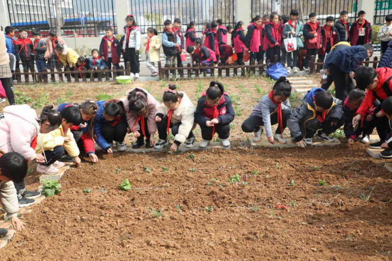 花园里藏着许多植物的知识。老师们先在教室里为学生普及种植物的相关知识,随后发动学生走出教室,走进种植园,亲手种植植物,感受劳动的快乐,体会劳动的价值。