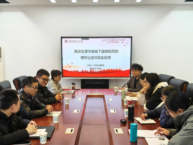 为进一步加强我院有组织科研工作、提升教师科学研究能力。11月19日下午,马克思主义学院青年学术沙龙(2025年第2期)在16#301报告厅举行,本次沙龙的主题为“商谈伦理学视域下道德规范的理性证成和现实应用”,由马克思主义学院任祥伟副教授主讲,陈群志副院长主持,十余位青年教师参加了此次活动。