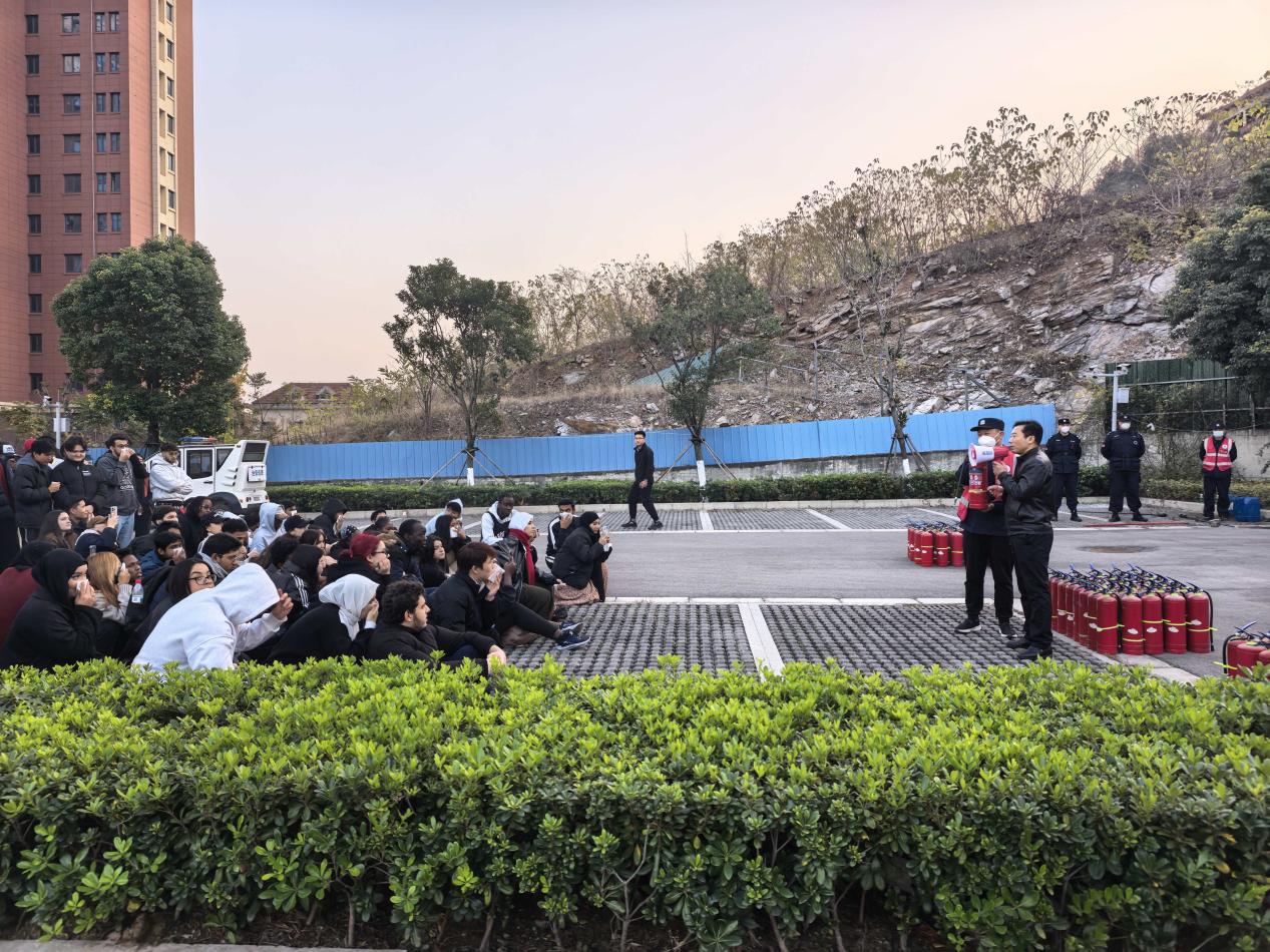 为提高留学生消防安全意识,11月26日下午,国际学院联合保卫部在留学生宿舍区成功开展消防安全培训与应急演练活动。