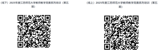 请参加本次培训的老师通过江苏师范大学教师教学发展管理平台(网址:https://jssfjf.mh.chaoxing.com/)登录并完成报名(报名分线下和线上两种方式,可扫描下方二维码报名)。