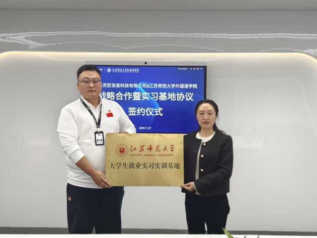 双方在学生专业发展、实习实践、就业招聘、校企合作等方面进行了深入探讨和交流,达成初步合作意向。王淑文与邵珠琪共同为“江苏师范大学大学生就业实习实训基地”揭牌。会前,参观了公司文化展厅、技术研发中心、TikTok直播间和办公区域等,深入了解数字化背景下的跨境电商业务和学生在跨境电商场景下的英语应用能力。