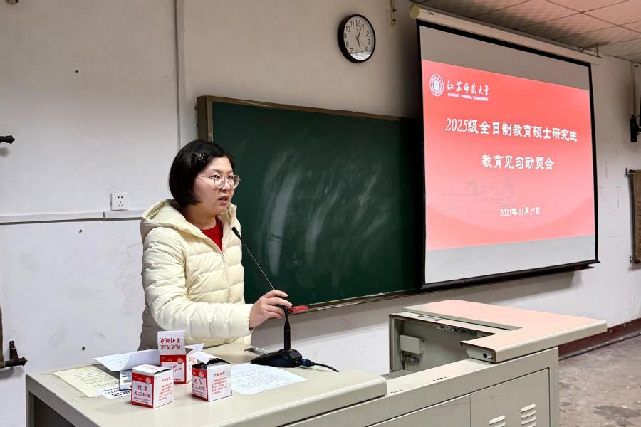 为切实落实全国教育专业学位研究生教育指导委员会《全日制教育硕士专业学位研究生实践教学基本要求》文件精神及学校研究生院《关于开展2025级全日制教育硕士研究生教育见习工作的通知》,确保2025级教育硕士教育见习工作安全、有序、高效开展,数学与统计学院教育见习工作领导小组于11月27日下午召开2025级全日制教育硕士教育见习动员大会。会议由研究生教学副院长祝宝宣主持,导师组组长吴晓红、研究生教务张琳蔚、班主任徐瑾以及见习带队老师张建兵出席动员会,2025级全体学科教学(数学)教育硕士参加。