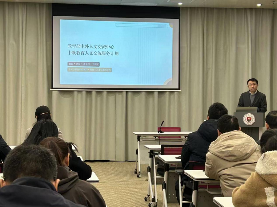 会上,罗亮围绕“中欧计划”的总体情况、工作流程、项目体系、整体布局及项目成果等五个方面作了详细介绍。他指出,“中欧计划”旨在为中国高校与欧盟成员国高水平公立大学之间的教育人文交流提供系统化支持,通过学生联合培养、教师访学、科研合作等多维度举措,促进中外教育资源共享与协同发展。