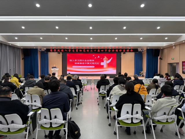 12月3日下午,商学院开展深入学习贯彻党的二十届四中全会精神宣讲会,校党委宣讲团成员罗栋梁院长作宣讲报告,学院全体教职工参加会议,院党委书记李亚东主持会议。