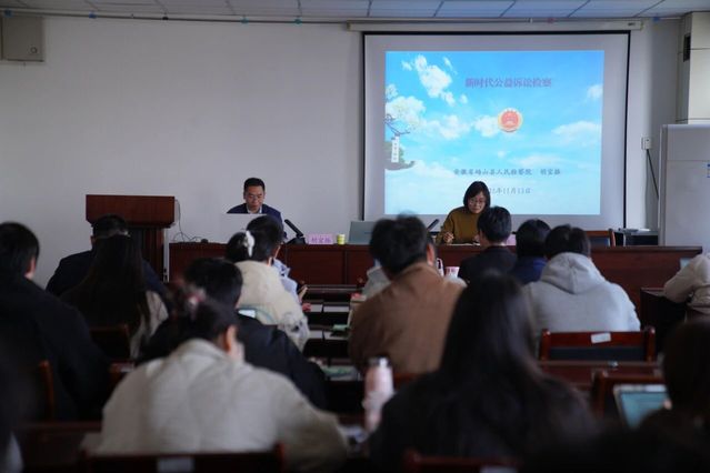 为深化检校协同育人工作,推动检察实务与法学理论深度融合,近日,江苏师范大学法学院特邀安徽省砀山县人民检察院检察委员会专职委员、第四检察部主任胡宜振,以“新时代公益诉讼检察”为主题,为研究生呈现了一场兼具理论深度与实践温度的实务盛宴,法学院副院长张杰主持讲座。