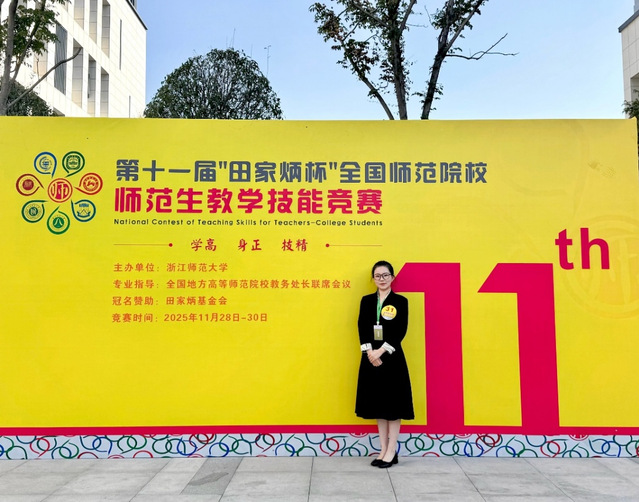 近日,第十一届“田家炳杯”全国师范院校师范生教学技能竞赛决赛在浙江师范大学圆满落幕。作为国内规模最大、层次最高、影响最广的师范生教学技能赛事之一,本届竞赛吸引全国289所院校的2345名选手参与初赛,经严格评审,178所学校的564名优秀选手入围决赛。我院小学教育专业陈安琪同学凭借扎实的专业功底、创新的教学设计与稳定的临场发挥脱颖而出,斩获全国二等奖,充分展现了过硬的教学基本功与良好的综合素养。