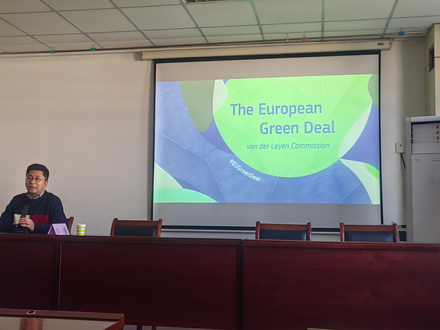 张萌博士首先结合自身在丹麦与瑞典的跨学科研究经历,介绍了其依托欧盟玛丽居里项目开展的研究工作,重点聚焦于贸易与可持续发展的交叉领域。他以当前国际气候治理热点为背景,指出理解欧盟气候战略对于把握全球绿色规则构建方向具有重要意义。