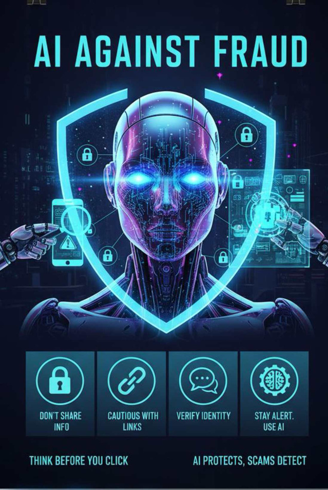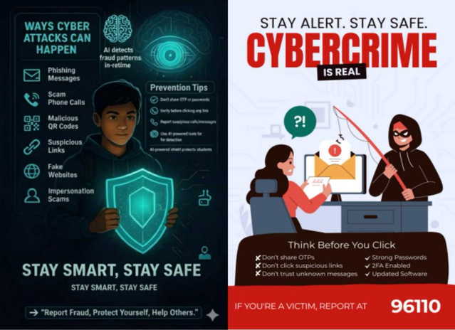 在夯实知识基础的同时,学院积极探索安全教育新模式,于近期成功举办“AI赋能・智慧反诈”主题海报创作大赛。大赛鼓励学生发挥创意,借助AI绘图与设计工具,将《防范电信网络诈骗手册》中的知识点转化为直观、生动、富有感染力的视觉艺术作品,实现反诈宣传的趣味化、智能化与个性化。