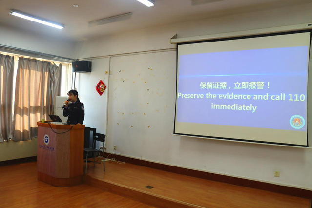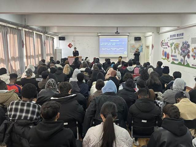 12月3日下午,国际学院特邀徐州市公安局铜山分局出入境管理大队陈新兴警官开展反诈专题讲座,近200名留学生参加。讲座由学院辅导员马瑞良老师主持。