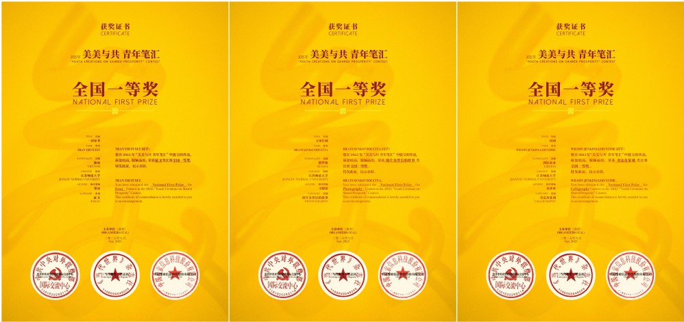 12月2日,由中共中央对外联络部《当代世界》杂志社牵头举办的“四大全球倡议擘画美好未来”——中外青年“美美与共”主题交流活动在北京举行。本次活动共收到来自73个国家青年的4012件参赛作品,经严格评审,最终评选出96件获奖作品及10个优秀组织奖。我校留学生凭借出色表现,荣获征文、书法篆刻及照片类一等奖等15项个人奖项,学校蝉联“优秀组织奖”。丰富的获奖作品类别,充分体现了我校留学生对中华文化的深入理解和创新表达能力。