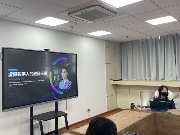 在专题分享环节,潘秋实老师结合实践经验,围绕虚拟数字人教育应用主题,深入解析交互型智能体系统搭建等关键技术,并通过课程整合、虚拟直播等场景案例,展示AI工具在传媒实践中的创新路径。与会教师围绕技术适配性、教学转化难点等展开讨论,为后续应用提供实操参考。