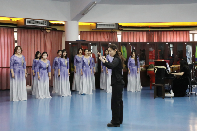 音乐会高潮迭起,袁振振老师执棒的《森林密密的红河两岸》融入了鲜明的民族元素。在鼓点与风铃的伴奏中,同学们通过节奏性的肢体动作与嘹亮歌声,生动展现了西南地区的独特风情,赢得现场热烈掌声。