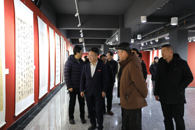 开幕式上,与会领导嘉宾共同为本次巡展剪彩。仪式结束,现场嘉宾和师生走近美术馆距离欣赏师生创作的书法篆刻作品,领会笔墨之中蕴含的红色精神与艺术风采。