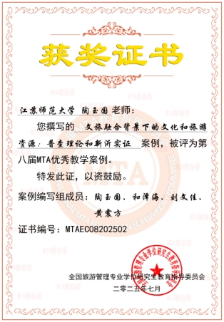 近日,全国旅游管理专业学位研究生教育指导委员会秘书处公布第八届全国MTA优秀教学案例入选名单,我院旅游管理专业陶玉国教授主持撰写的《文旅融合背景下的文化和旅游资源:普查理论和新沂实证》成功入选,成为我校首次入选该案例库的优秀教学案例。