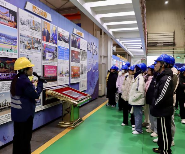 14时许,调研首站走进徐工集团。学子们在智能车间内,目睹了机械臂精准作业的智能制造场景,实时更新的生产数据直观呈现了“大国重器”的诞生过程。通过观摩全生产流程、聆听创新事迹,大家了解到徐工集团累计掌握100余项核心技术、6000项专利,破解行业超20%关键技术难题,研制出国内首台汽车起重机等标志性产品的硬核实力。带队老师现场感慨:“徐工不仅是制造业的领军企业,更是勇担使命的责任标杆。此次实地观摩,能让同学们跳出课本理论的框架,在工业制造实景中直观体悟行政管理在企业运营、技术创新中的实战价值。”同学们纷纷表示,钢铁厂房里的实干温度与自主创新的奋进故事,让“中国制造”不再是抽象概念,而是具象、厚重且充满力量的时代符号。