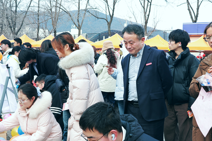 游园会期间,校党委书记芮国强来到活动现场,与同学们共逛年味大集,为同学们送上新年祝福,一同感受浓浓的节日氛围。