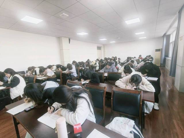 比赛现场,同学们敛神伏案、执笔试墨,以铁画银钩的笔触将马克思主义经典段落落于纸上。笔锋流转之间彰显书写功力,点画布局之中蕴含理论深度。纸笔轻响,墨香淡淡,书法雅韵与经典文本的厚重意蕴在此交相辉映