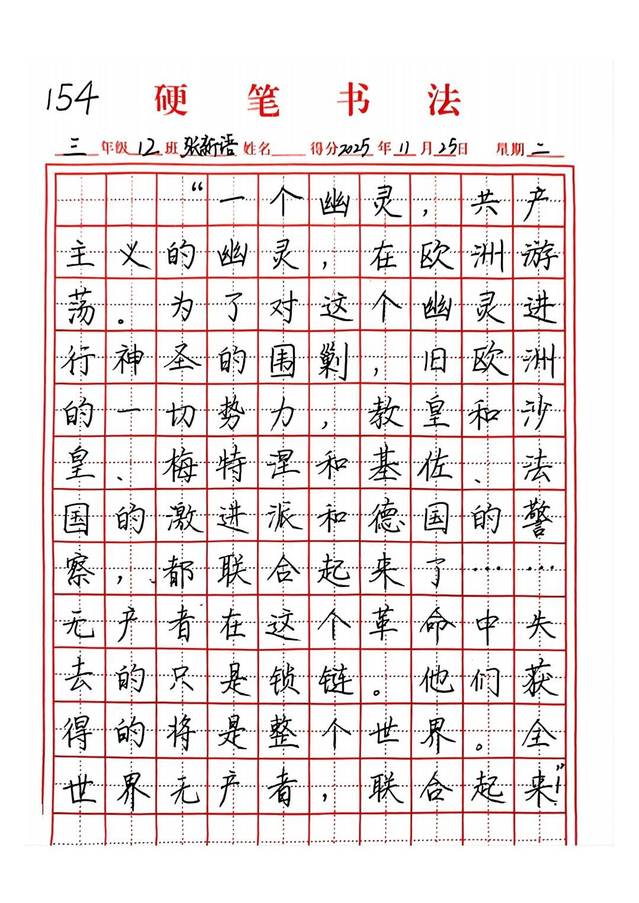 在数字时代“提笔忘字”现象日益普遍的今天,钢笔字作为“三笔字”的重要组成部分,兼具文化修养与心性磨炼价值。近日,马克思主义学院墨迹书法社成功举办钢笔字比赛。本次活动作为学院学风建设与职业发展服务月的重点项目,以誊写马克思主义经典原著选段为核心,实现了书法技艺与理论学习的有机融合。