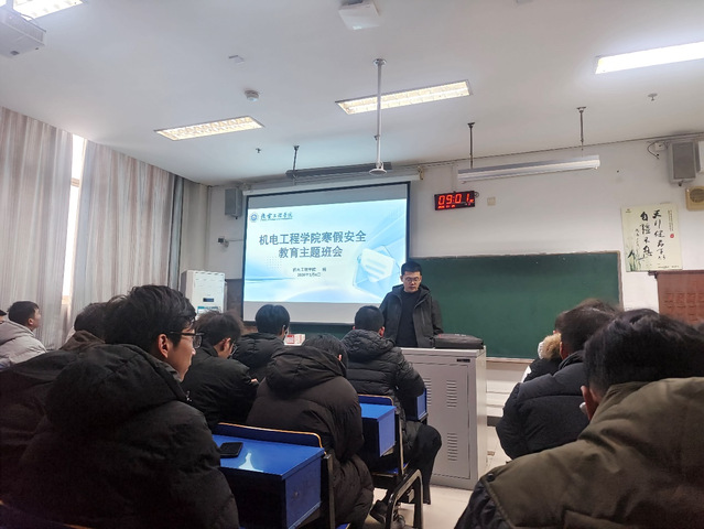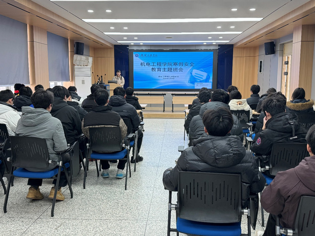 为增强学生寒假期间的安全防范意识,有效预防各类安全事故发生,近日,机电工程学院组织各班级召开寒假安全教育专题班会。班会由各班班主任主持,全体学生参加。