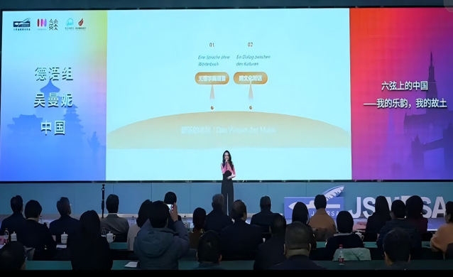 我校欧美同学会会员、音乐学院吴曼妮老师凭借主题演讲《六弦上的中国——我的乐韵,我的故土》成功突围,荣获德语组第一名。演讲中,吴曼妮老师结合个人经历,深情讲述了自己如何以吉他这门“世界语言”为载体,将中国故事融入旋律、传递海外的实践历程,让现场观众感受到音乐跨文化传播的独特魅力与中国文化的深厚底蕴。