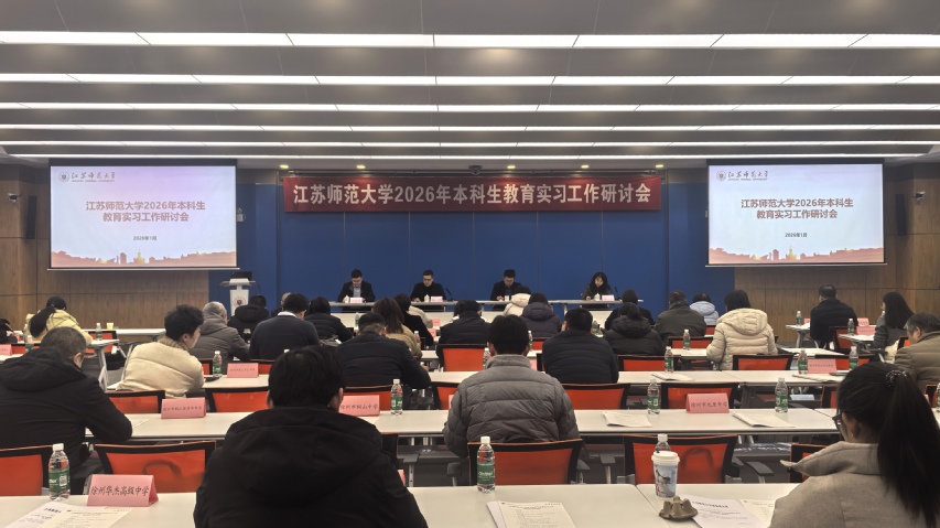 为全面提升师范生教学实践能力与培养质量,进一步规范教育实习管理、深化校地合作育人机制,1月14日,我校召开2026年本科生教育实习工作研讨会。校党委常委、副校长赵鹏,徐州市教育局教师工作处副处长鹿仲耀,各实习学校分管副校长、教务主任,以及实习生培养学院教学院长等100余人参加会议。