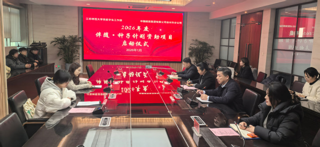 近日,2025-2026学年“伴随种子计划”资助育人项目启动仪式在中国邮政集团徐州分公司举行。中国邮政集团徐州分公司部门负责同志、江苏师范大学党委学生工作部有关同志和10名受助学生出席仪式。