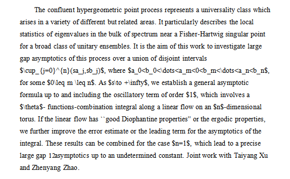 报告题目:Confluent hypergeometric kernel determinant on multiple large intervals