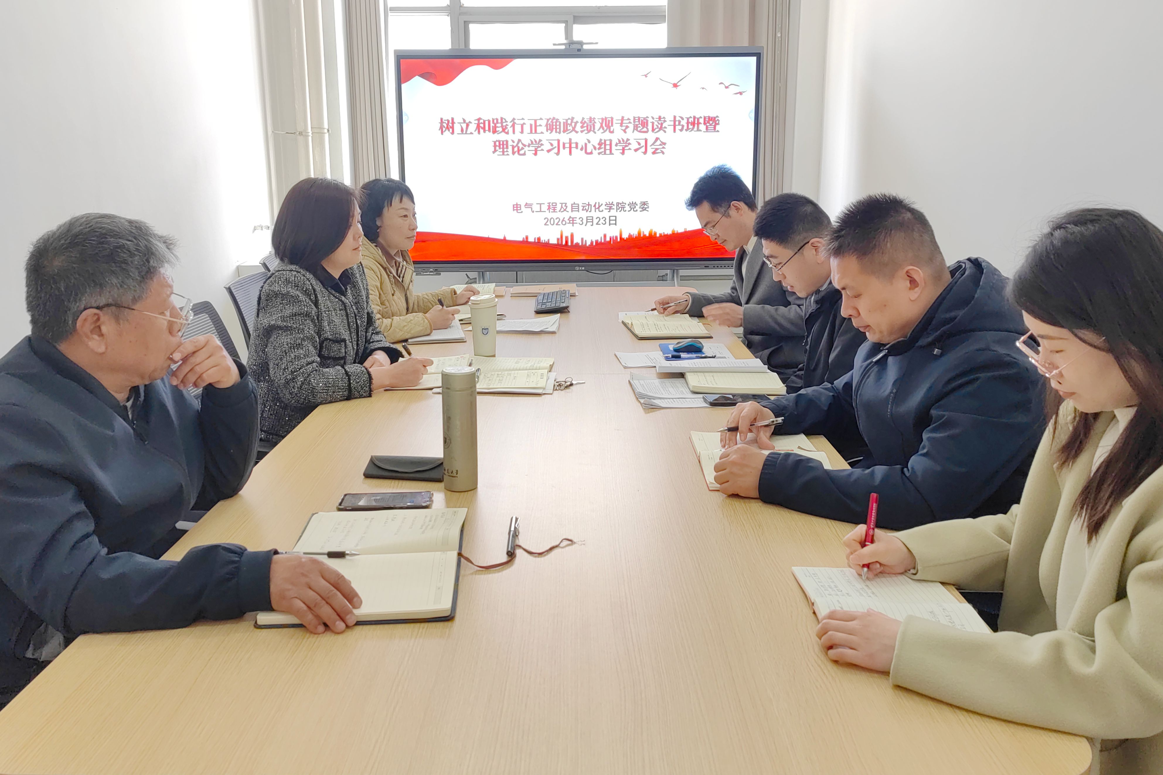 3月23日,电气工程及自动化学院召开树立和践行正确政绩观专题读书班暨党委理论学习中心组学习会议,集中学习《习近平关于树立和践行正确政绩观论述摘编》。院党委书记潘震鑫主持会议,党委理论学习中心组全体成员参加学习。