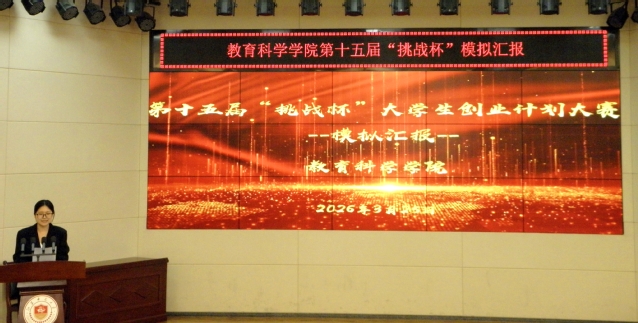 3月25日下午,教育科学学院第十五届“挑战杯”中国大学生创业计划竞赛模拟汇报在学院106报告厅举行。本次活动旨在为参赛团队提供实战演练与项目指导的平台,助力项目打磨完善,更具市场潜力。院党委副书记武悦、系主任、指导教师担任评委。