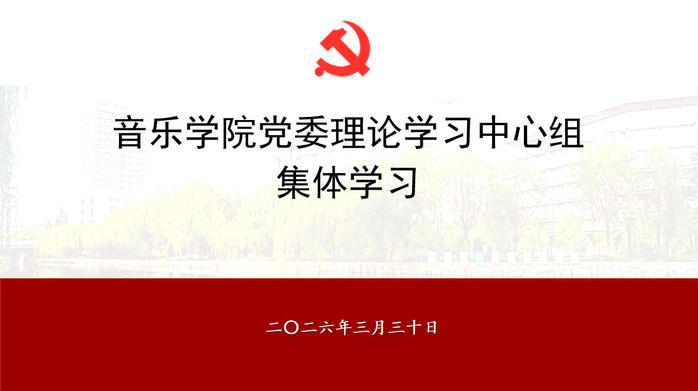 3月30日上午,音乐学院党委理论学习中心组举行了2026年度第二次集体学习,学院党委委员、领导班子成员参加学习,党委书记高小平主持学习。