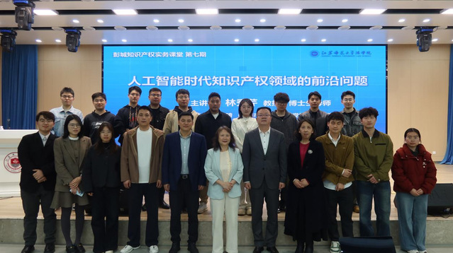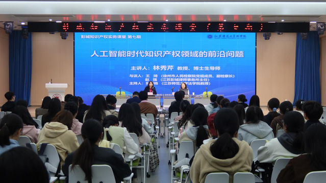 2026年3月31日下午,厦门大学法学院教授、博士生导师林秀芹应邀做客“彭城知识产权实务课堂”,讲座主题为“人工智能时代知识产权领域的前沿问题”。徐州市人民检察院党组成员、副检察长王琦与江苏彭城律师事务所主任赵强参加与谈。本次讲座由江苏师范大学法学院主办,江苏省知识产权研究(江苏师范大学)中心承办,江苏彭城律师事务所协办,江苏师范大学知识产权发展研究院执行院长张春艳教授主持。江苏彭城律师事务所合伙人李想律师及其知识产权团队、江苏师范大学法学院部分师生参与了本次讲座。