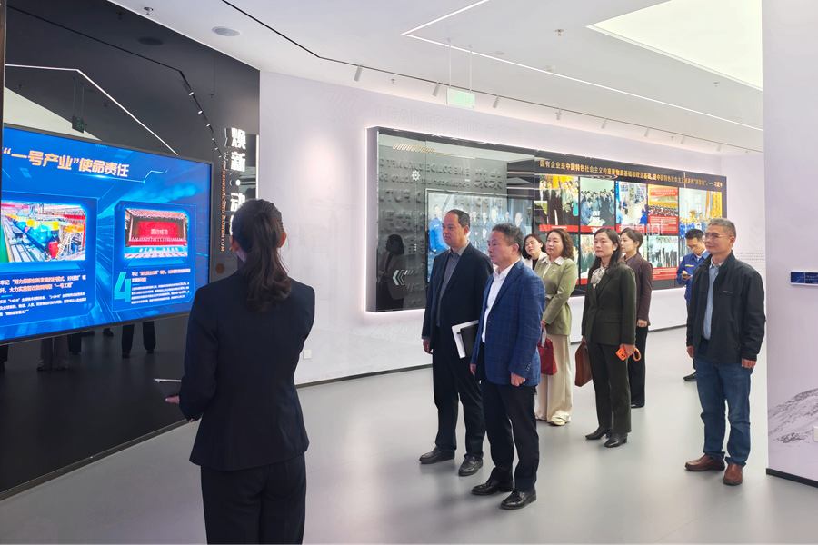 芮国强首先带队参观了徐工集团总部展厅(徐工智造探索中心),观看了企业宣传片,深入了解徐工集团的发展历程、企业文化、产业布局及智能制造创新成果。