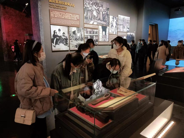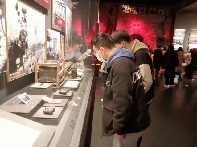 随后机电学子参观了总前委群雕、淮海战役纪念馆,讲解员生动详细讲解了淮海战役的“两种前途 命运决战”、“逐鹿淮海 决战决胜”、“人民战争 深厚伟力”、“革命英烈永垂不朽”四个部分。同时,机电学子参观了展馆内大量详实的历史图片、音像资料、战地实物以及现代化的还原战争场景。同学们更进一步了解那段波澜壮阔的战争场面,深刻感受革命先烈们不畏强敌、不怕牺牲的革命精神;深刻感受人民群众无私无畏、奋勇支前的“小推车精神”;深刻感受党与人民群众在战火洗礼中结下的鱼水之情。
