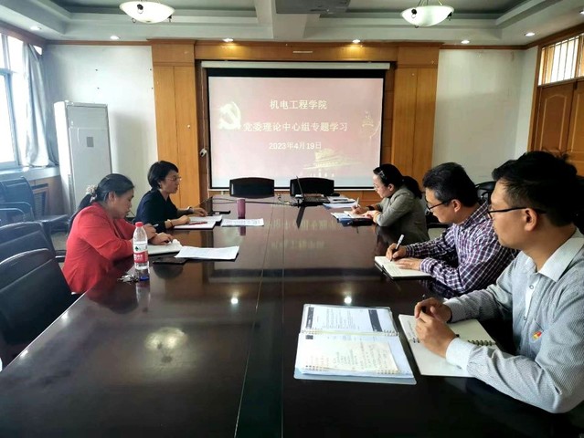 4月19日下午,机电工程学院党委开展理论学习中心组4月份专题学习。学院理论学习中心组全体成员参加会议,会议由院党委书记何莉娜主持。