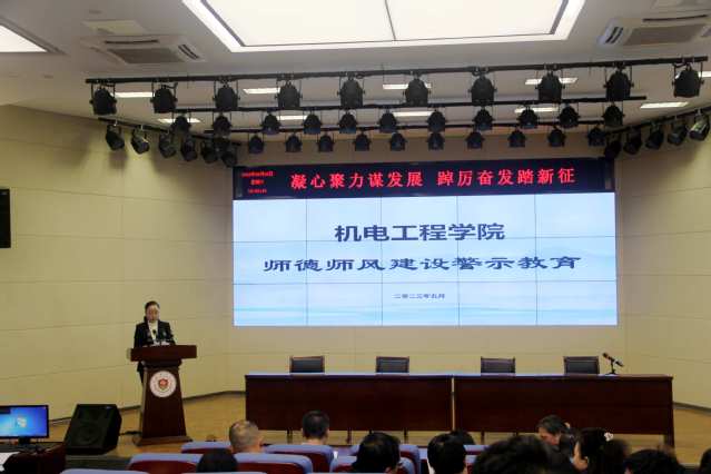 为引导教师牢固树立以德立身、以德立学、以德施教、以德育人的初心使命,切实提高教师规则意识、底线意识,5月6日下午,机电工程学院在13号楼报告厅开展师德师风专题警示教育活动。全体教职工参加本次活动。