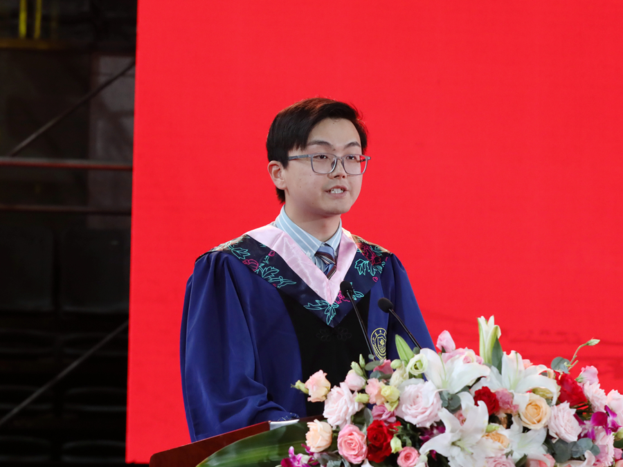 教育科学学院刘铖同学代表毕业研究生发言,分享了读研期间刻苦求学和创新实践的丰富经历,向陪伴成长的母校、教导成才的老师和相互扶持的同窗致以衷心的感谢。刘铖表示,在最好的青春,要坚定梦想的方向、保持奋斗的姿态、不负青年的担当,在更大的格局中找到实现自我价值的坐标,在波澜壮阔的伟大征程中演绎壮美人生。
