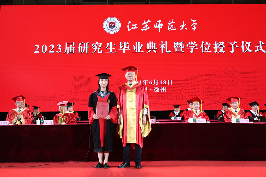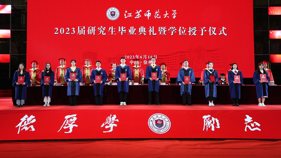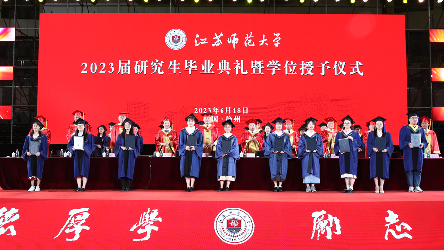 6月18日上午,江苏师范大学2023届研究生毕业典礼暨学位授予仪式在泉山校区体育馆隆重举行。全体校领导出席典礼,校学位评定委员会委员、承担研究生培养任务的各学院领导、研究生导师代表、2023届全体毕业研究生、往届毕业研究生代表、研究生亲属代表、非毕业年级研究生代表参加典礼。校党委副书记岑红主持典礼。