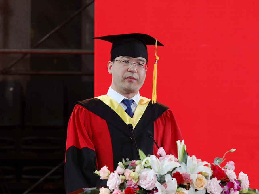 物理与电子工程学院杨志勇教授作为研究生导师代表发言。杨志勇结合自身经历,深情勉励研究生要始终保持乐观向上、积极进取的态度,始终修炼与人为善、芳草玉树的品德,始终拥有关心家人、温暖家庭的情怀,始终铭记服务社会、报效祖国的责任,用积极的心态和踏实的行动破浪远航。
