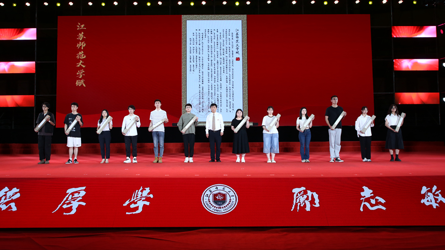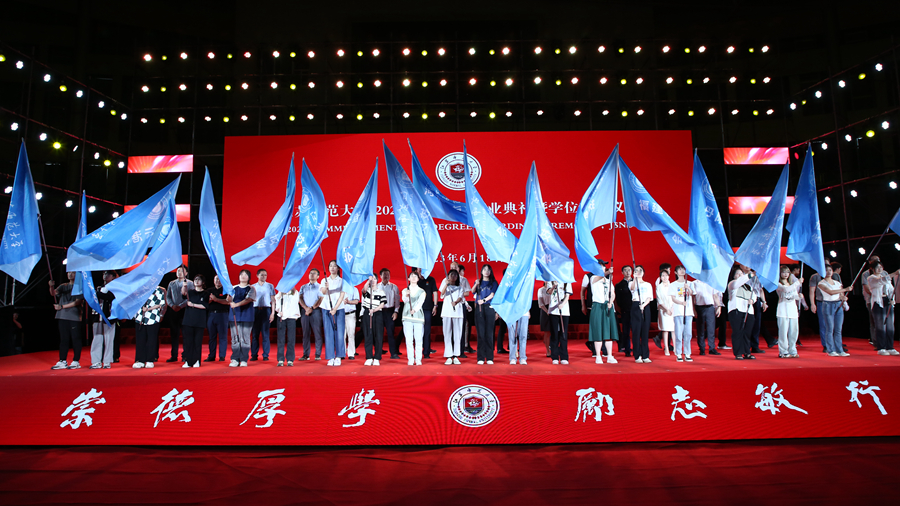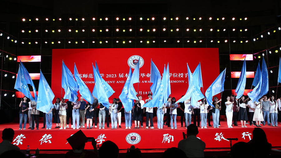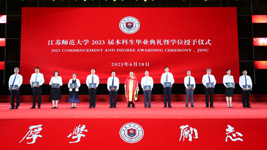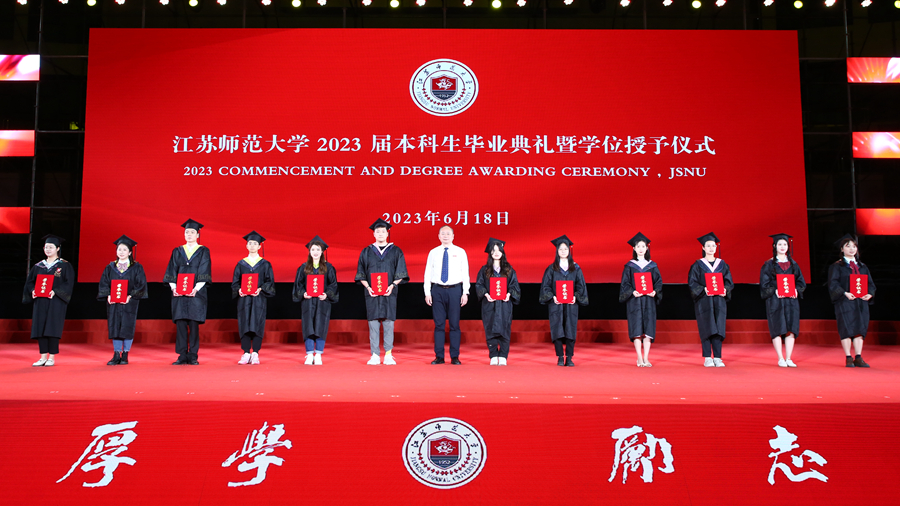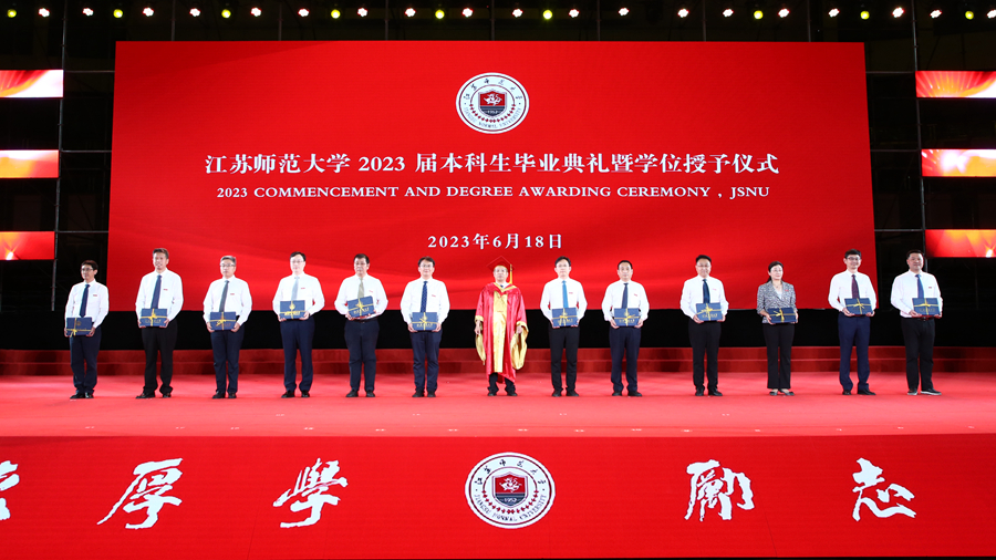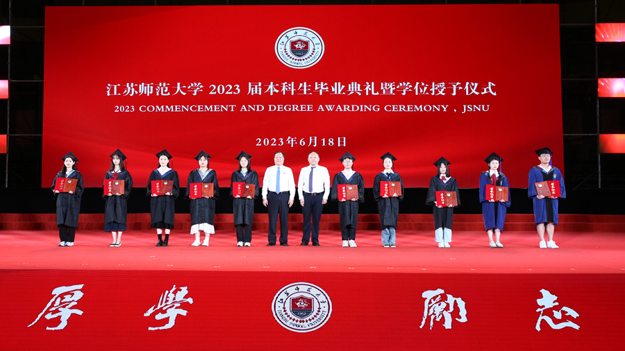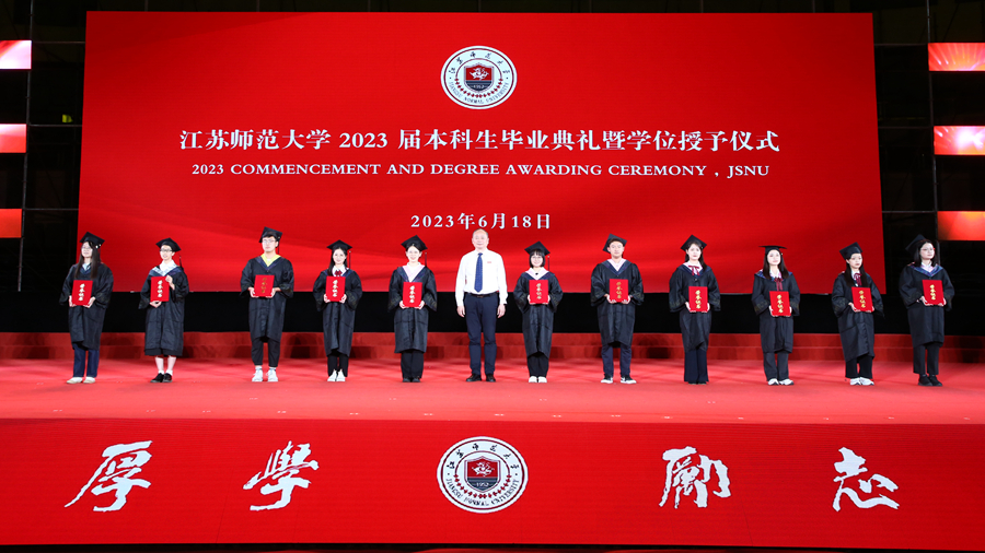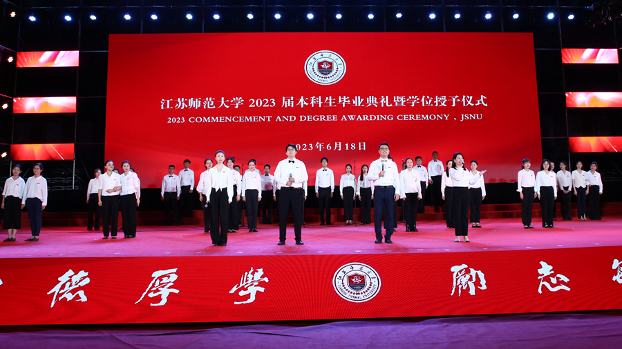 整场典礼在辅导员合唱团演唱的《同桌的你》歌声中落下帷幕,全体2023届江苏师大毕业生也带着母校和校友们的殷切期盼,意气风发开启新征程。