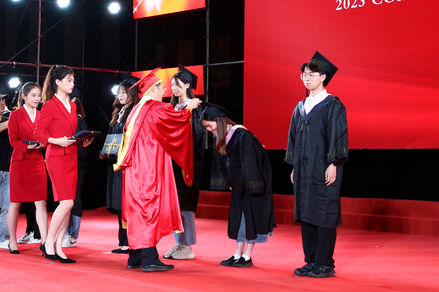 桃李芬芳结满树,莘莘学子赴前程。又是一年毕业季,我校2023届本科毕业生圆满完成学业,即将离开母校奔赴新的征程。6月18日下午,学校隆重举行2023届本科生毕业典礼暨学位授予仪式。全体在徐校领导,校学位评定委员会全体委员,校学生工作委员会全体委员,各学院院长、党委副书记、专职辅导员、毕业班班主任、教师代表,各地校友会会长、秘书长、校友代表,2023届本科毕业生,毕业生家长代表,2020、2021、2022届本科毕业生代表共同参加了典礼。典礼分为三个篇章:《仲夏时•毕业季》《凌云志•勇担责》《致青春•梦远航》。