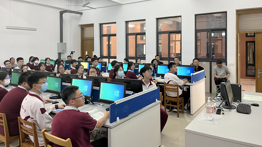 蔡国春一行深入课堂,观摩了现代教育技术专业李心蓓同学、学科教学(历史)王龙同学、学科教学(政治)有梦晗三位教育硕士研究生的公开课。徐州一中信息学科主任蔡可钊、历史学科实习指导教师赵子微、政治学科主任吴敬志,我校马克思主义学院教授陈美兰、历史与旅游学院教授刘玲、智慧教育学院教授王娟等先后对三位同学的公开课进行点评,针对课程内容和教材的选择、课堂环节及时间的把握、教师与学生的课堂互动、课程的预设与留白等问题进行了深入交流探讨,指出了教学中的优缺点,并为更好设计与实施教学提出指导意见和建议。