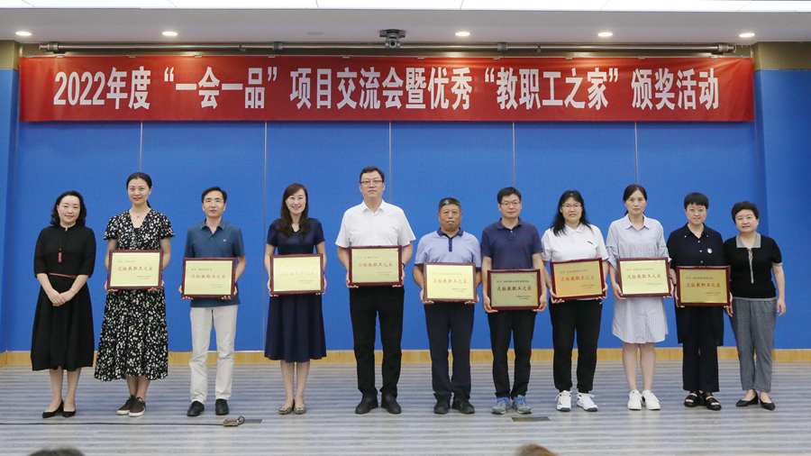 为进一步激发基层工会妇联组织活力,充分发挥先进基层组织的示范带动作用,近日,学校举办2022年度“一会一品”项目交流会暨优秀“教职工之家”颁奖活动。校党委副书记岑红,徐州市妇联副主席王晓丹,校党委常委、宣传部部长孟召学及相关部门负责人出席会议,全校各基层工会主席、妇联主席及“一会一品”项目负责人、受表彰的先进集体代表等60余人参加活动。校妇联负责同志主持活动。