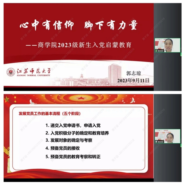 为进一步教育、引导新生积极向党组织靠拢,端正入党动机,坚定理想信念,知晓加入中国共产党的条件和程序,商学院于9月11日上午通过线上方式组织2023级新生开展了入党启蒙教育,此次讲座由商学院本科生第一党支部书记郭志琼老师主讲。