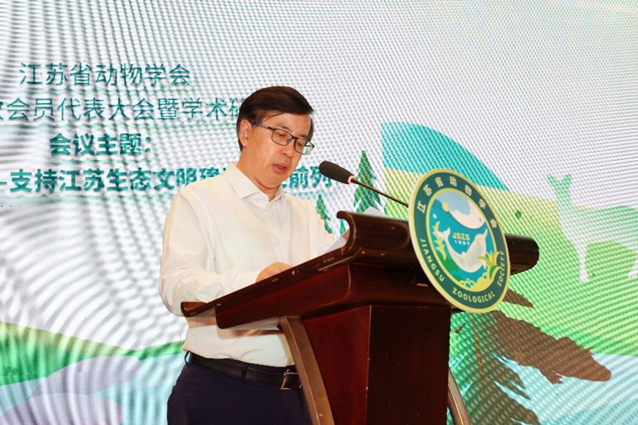 中国科学院院士、江西农业大学校长、中国动物学会副理事长兼秘书长魏辅文出席本次学术研讨会,并作了题为《濒危动物种群基因组学研究进展》的报告。江苏省科学技术协会副主席冯少东,我校党委常委、副校长杜增吉,中国动物学会副理事长杨光,南京师范大学生命科学学院党委书记许小东出席会议开幕式并致辞。学校相关职能部门负责同志、生命科学学院青年教师和研究生代表等参加会议。