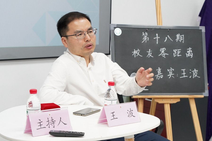 活动中王波校友以“青年在选择志业时的思考”为主题与同学们展开面对面地交流。活动开始,王波校友幽默风趣的开场白让在场的学生很快放松下来,随后王波校友分享了自己在母校四年的生活学习情况、个人的成长发展经历和人生思考。在分享过程中,王波校友强调要精通专业形成核心竞争力,通过写作学会严密地表达,在人际交往中要见贤思齐,要通过读书与名家大师交流,不断提升自己。王波校友用朴实的话语深入浅出地告诉同学们要珍惜大学里的宝贵时光,充分利用学校图书馆的资源阅读经典,拓展视野,鼓励同学们在自己感兴趣的领域和方向,深入探索钻研,积极尝试撰写学术论文。王波校友还鼓励同学们在日常生活中要多和有积极正能量的人交往,在生活这本大书里辛勤耕耘,尊重每一个领域的科研成果,努力拓宽自身的知识面,探索发现未来的无限可能。