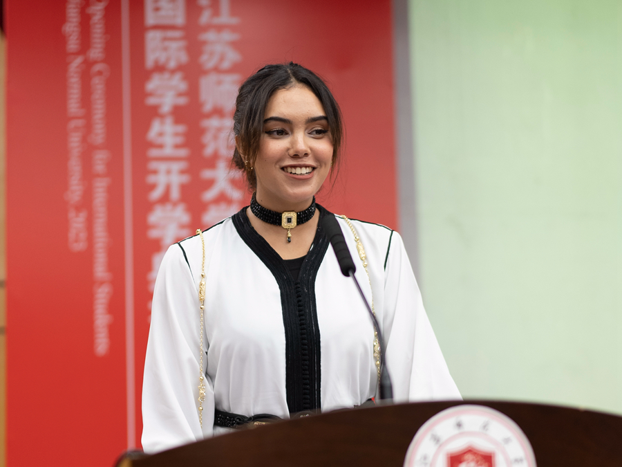 2022级硕士、来自马来西亚的中国政府奖学金生代表FOO BI LIN在发言中回顾了自己在江苏师范大学的学习和成长经历。他鼓励同学们珍惜难得的学习机会,拥抱丰富多彩的校园生活,利用多种平台展示和充实自己。来自摩洛哥的JABNI NOUHAILA作为新生代表发言,她讲述了自己选择中国和江苏师范大学的原因,对能够与各国优秀青年学子相聚江苏师大、共启人生新征程充满了期待和憧憬。