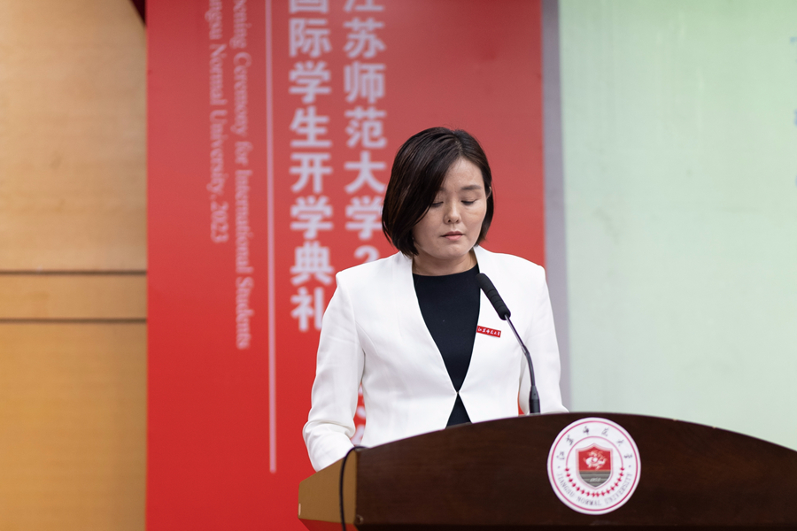 9月26日下午,江苏师范大学2023级国际学生开学典礼在敬文报告厅举行。校长周汝光以及相关职能部门和学院负责人、国际学院全体教职工出席典礼。来自美国、摩洛哥、俄罗斯、哈萨克斯坦、越南等35个国家的200余名国际学生参加开学典礼。